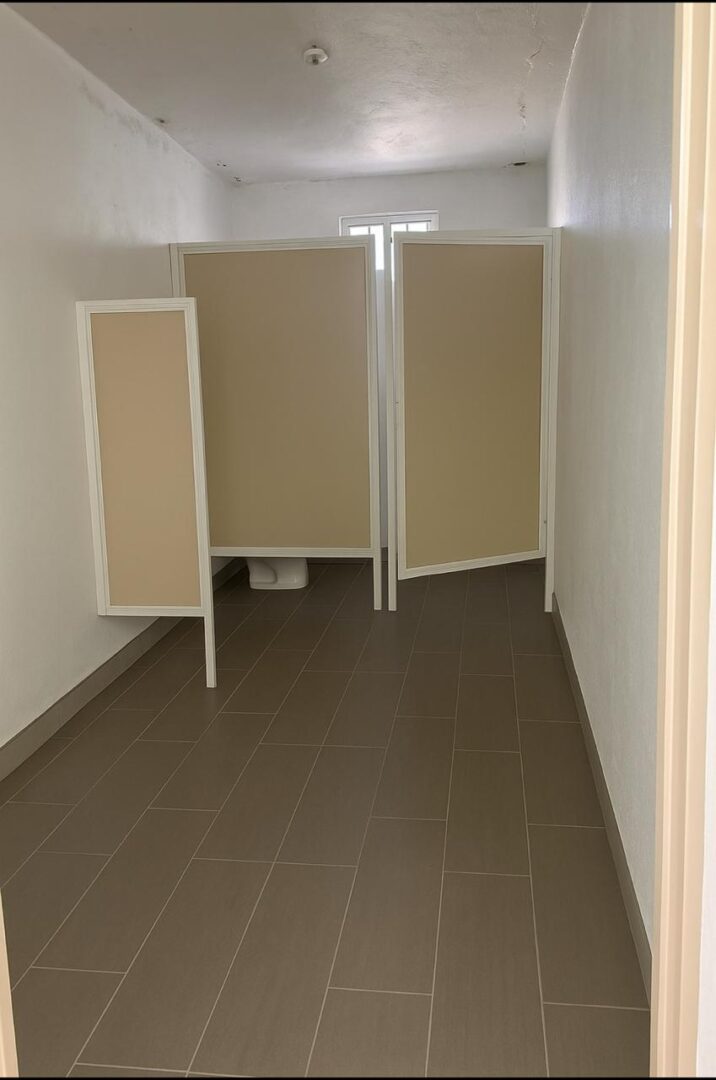Consta de baños hombres y baño para mujer una pequeña oficina